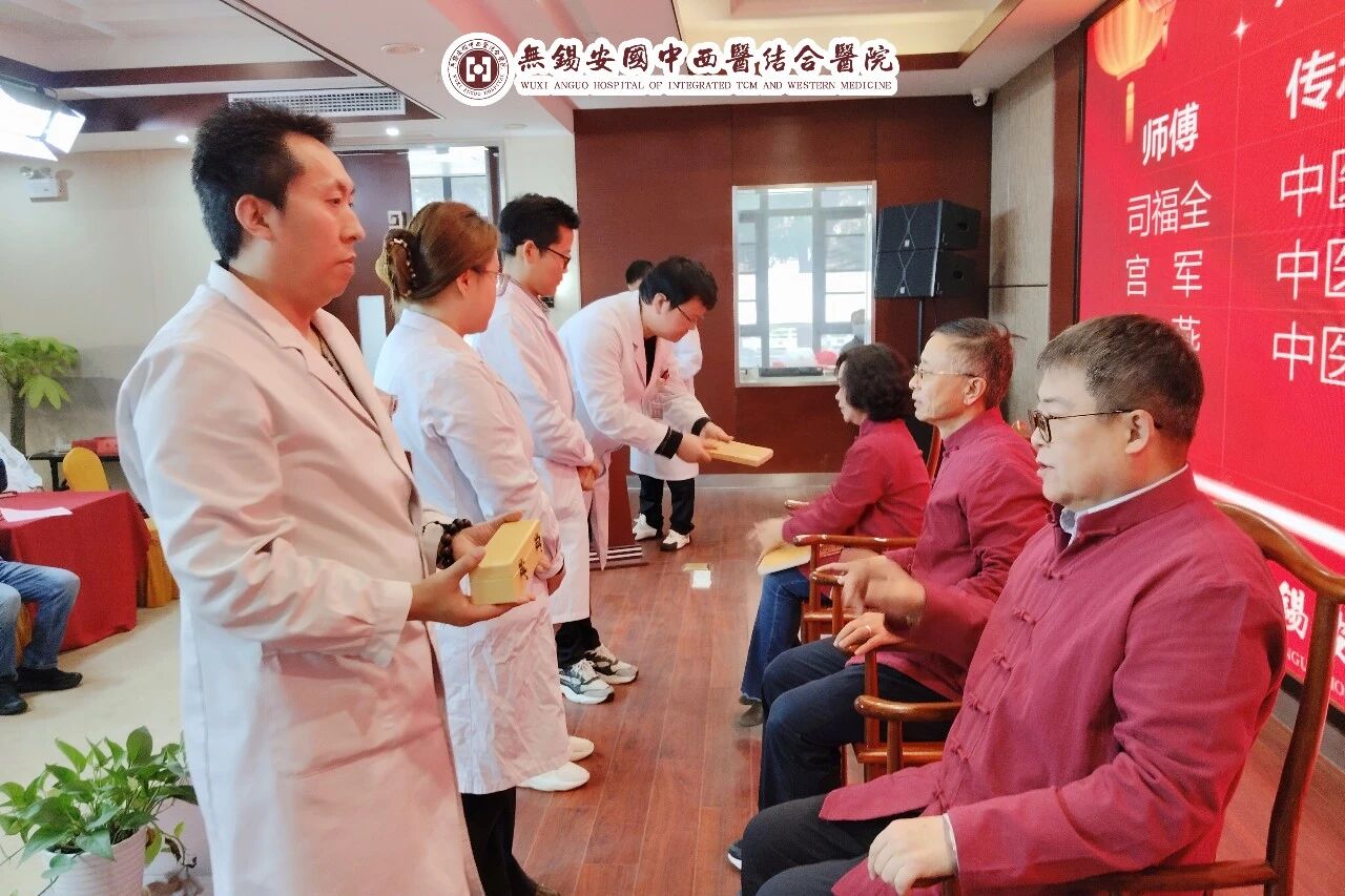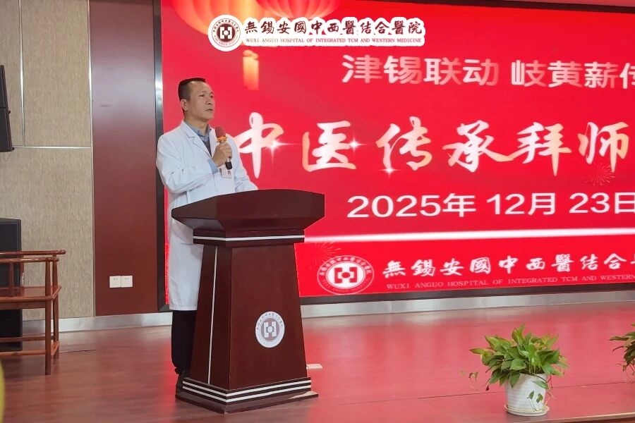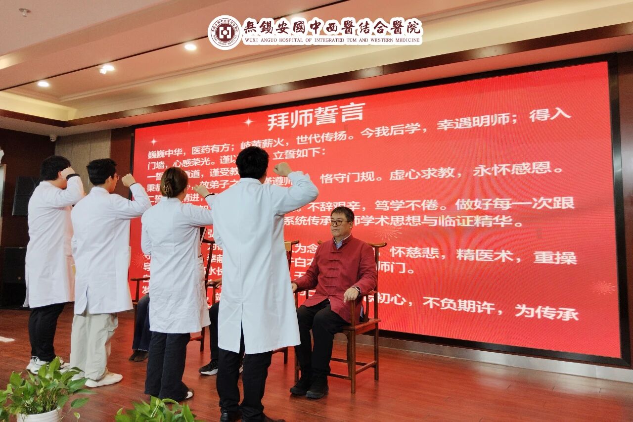 为深化中医药人才培养,传承名医学术精华,12月23日下午,无锡安国医院在综合楼一楼大会堂隆重举行“津锡联动,岐黄薪传”中医传承拜师仪式。本次活动旨在通过建立高规格师承关系,引入天津名中医工作室的先进学术思想与特色技术,进一步加强医院中医内涵建设,培育优势专科,提升区域中医诊疗核心竞争力。“津锡联动 岐黄薪传”中医传承拜师仪式活动现场